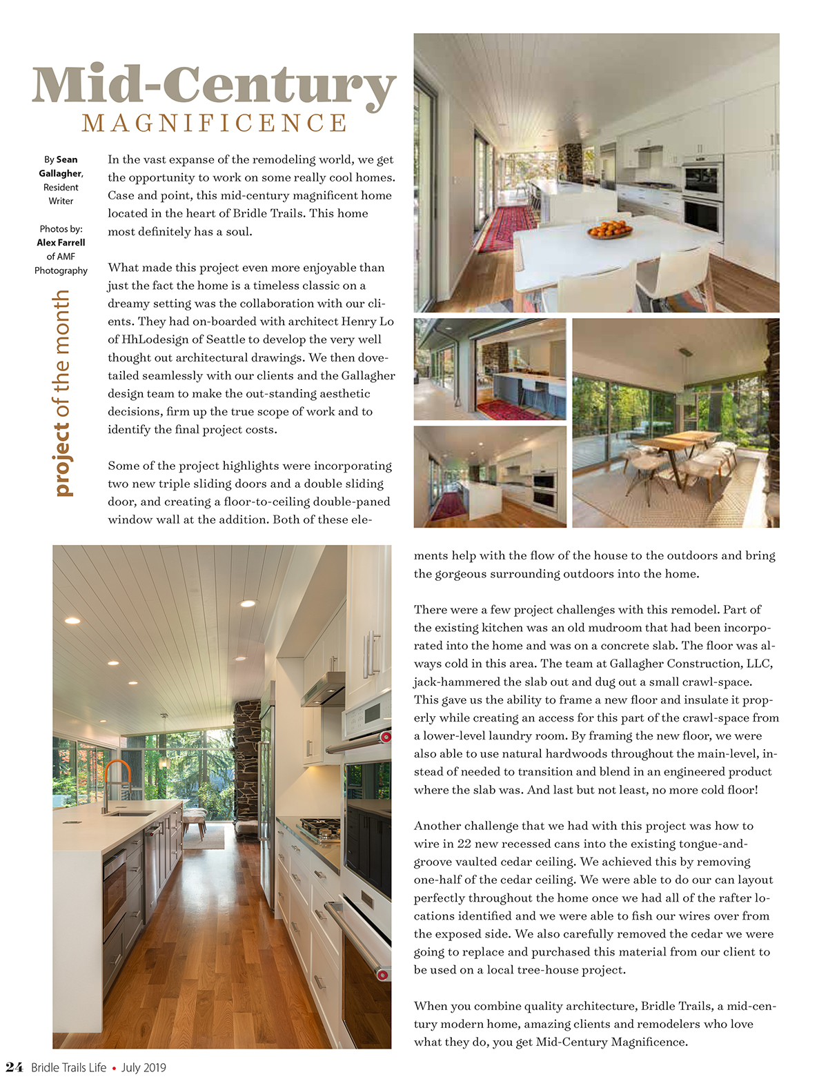 The Article "Project of the month, Mid-Century Magnificence" by Bridle Trails LIFE, issue July 2019. [click here to read the full article]