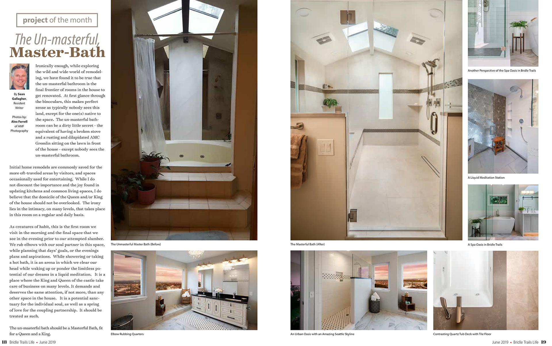 The Article "Project of the month, The Un-masterful, Master-Bath" by Bridle Trails LIFE, issue June 2019. [click here to read the full article]